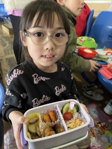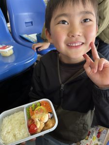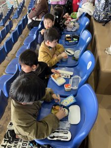 お昼ご飯は、お家の方に作ってもらったお弁当をお友だちと見せ合いながら食べていてとても喜んでいました🍱😋