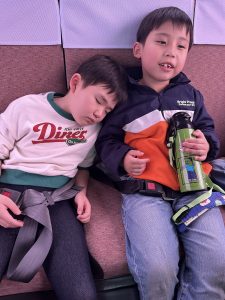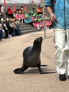 お弁当の後はおまちかねのイルカのショー✨ジャンプが決まるたびに「すごーい!」と大歓声が上がました👏。アシカのお散歩では目の前を歩く姿に「かわいい!!」と興奮していました😍。そのあとも館内をみてまわり、帰りのバスでは、おやつタイムで一気に盛り上がり元気いっぱい!ところが食べ終わって少しすると電池が切れたように静かになり、あれだけにぎやかだった子どもたちが次々とスヤスヤ…夢の中へ😴