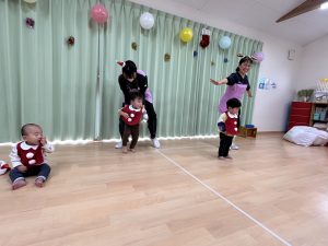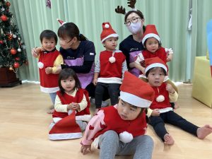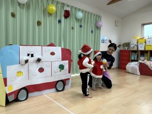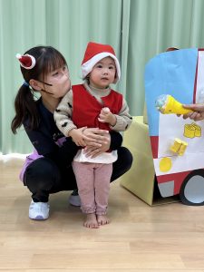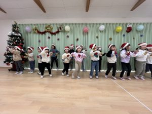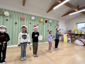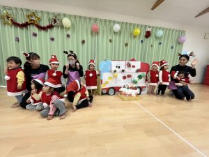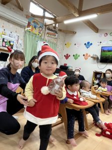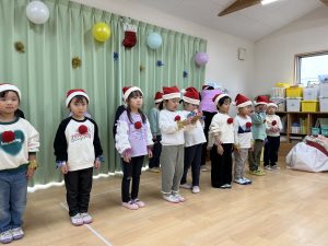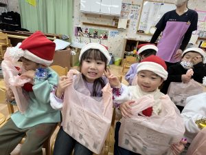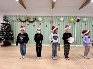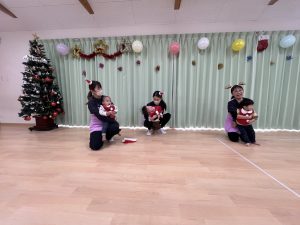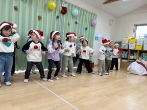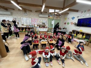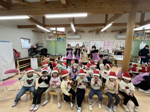 竹村さん訪問から園へ戻ってきて、乳児さんも一緒にクリスマス会を行いました🎄