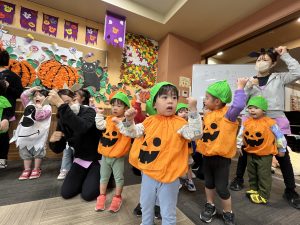 りす組さんは運動会で踊った「スマイル」を披露させていただきました😌運動会とは違いハロウィンの衣装に身を包んだ子どもたちもとってもかわいかったです🌟きのこ組さんはりす組さんをマラカスでノリながら応援🎵