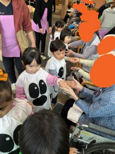 最後はみんなでおじいちゃん、おばあちゃんにタッチをしてお別れです😊