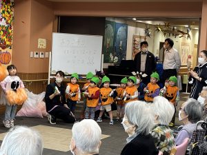 10月31日に有料老人ホーム竹村様へきのこ組・りす組さんが行ってきました🎃子どもたちの姿が見えるとおじいちゃん、おばあちゃんの力強い「かわいい!!!」の声が😁子どもたちもその声に笑顔でした😊