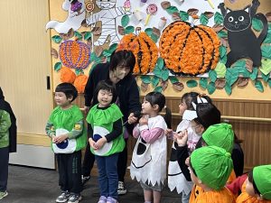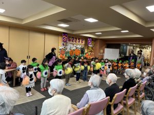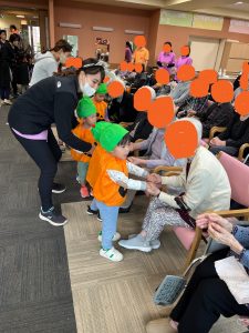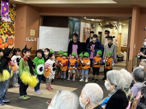 10月31日に有料老人ホーム竹村様へきのこ組・りす組さんが行ってきました🎃子どもたちの姿が見えるとおじいちゃん、おばあちゃんの力強い「かわいい!!!」の声が😁子どもたちもその声に笑顔でした😊