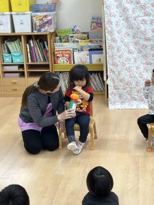 12月18日にお誕生日会がありました。今回は1名のお友達が前に出てきてくれました👏